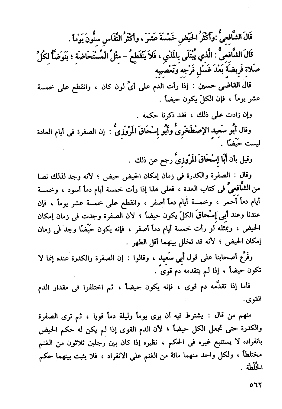 وقال أبو سعيد الإصطخري وأبو إسحاق المروزي، إن الصفرة في أيام العادة ليست حيضًا.