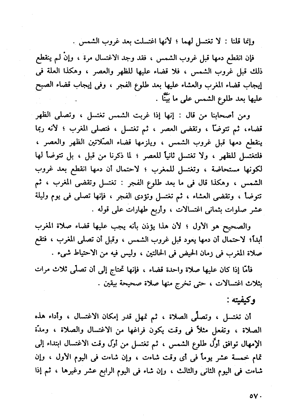 والصحيح هو الأول؛ لأن هذا يؤذن بأنه يجب عليها قضاء صلاة المغرب أبدًا، لاحتمال أن دمها يعود قبل غروب الشمش، وقبل أن تصلي المغرب، فتقع صلاة المغرب في زمان الحيض في الحالتين، وليس فيه من الاحتياط شيء، فأما إذا كان عليها صلاة واحدة قضاء، فإنها تحتاج إلى أن تصلي ثلاث مرات بثلاث اغتسالات، حتى تخرج منها صلاة صحيحة بيقين.