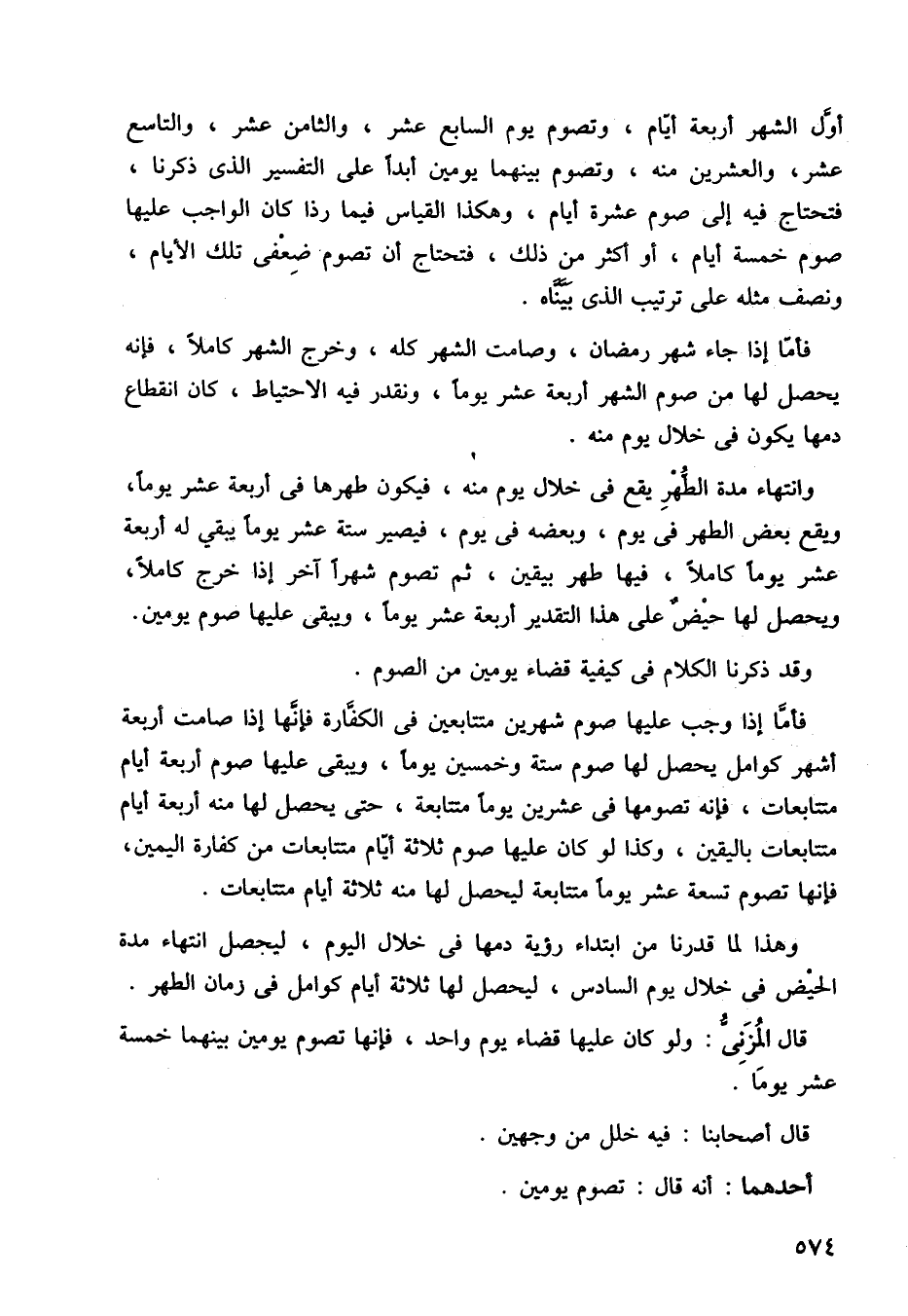 أول الشهر أربعة أيام، وتصوم يوم السابع عشر، والثامن عشر، والتاسع عشر، والعشرين منه، وتصوم بينهما يومين أبدًا على التفسير، الذي ذكرنا، فتحتاج فيه إلى صوم عشرة أيام، وهكذا القياس فيما رذا كان الواجب عليها صوم خمسة أيام، أو أكثر من ذلك، فنحتاج أن نصوم ضعفي تلك الأيام، ونصف مثله على ترتيب الذي بيناه.