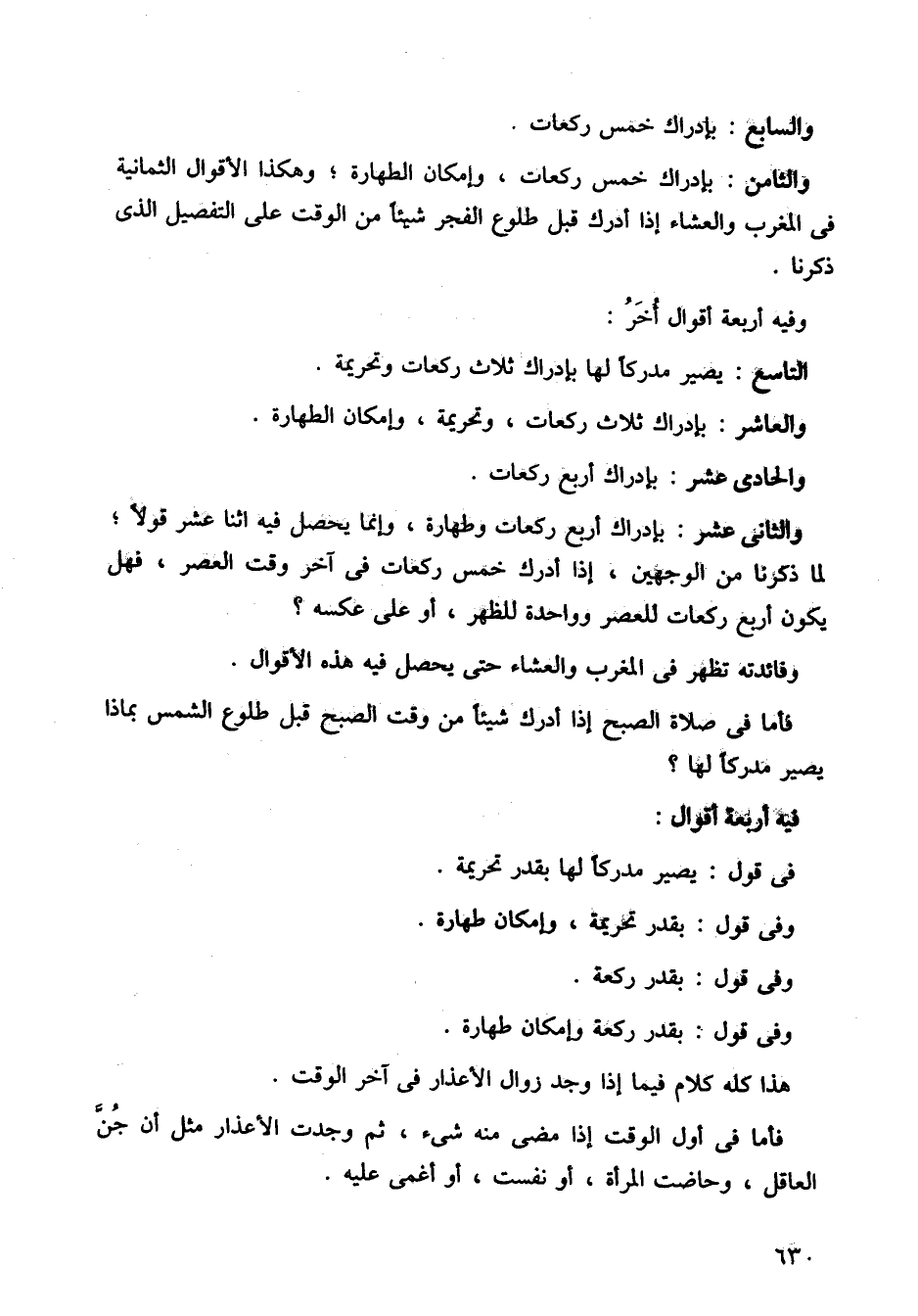 والثامن: بإدراك خمس ركعات، وإمكان الطهارة، وهكذا الأقوال الثمانية في المغرب والعشاء إذا أدرك قبل طلوع الفجر، شيئًا من الوقت على التفصيل، الذي ذكرنا.