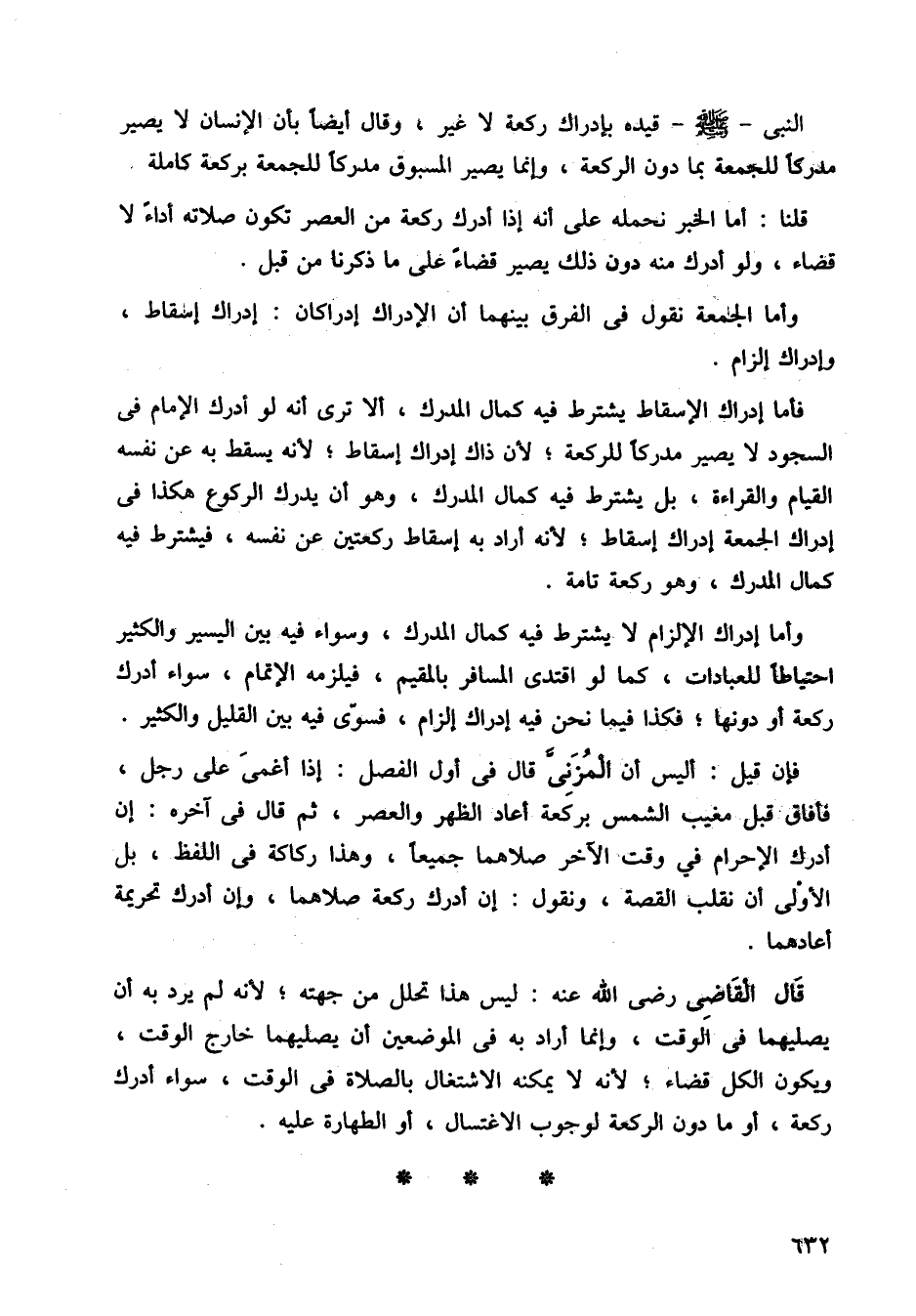 فأما إدراك الإسقاط يشترط فيه كمال المدرك، ألا ترى أنه لو أدرك الإمام في السجود لا يصير مدركًا للدركعة، لأن ذاك إدراك إسقاط، لأنه يسقط به عن نفسه القيام والقراءة، بل يشترط فيه كمال المدرك، وهو أن يدرك الركوع هكذا في إدراك الجمعة إدراك إسقاط؛ لأنه أراد به إسقاط ركعتين عن نفسه، فيشترط فيه كمال المدرك وهو ركعة تامة.