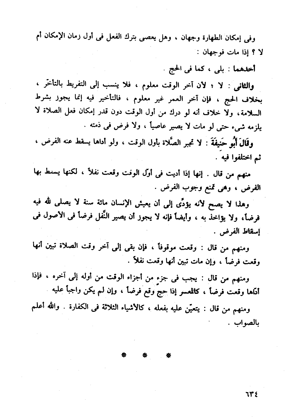 ومنهم من قال: يجب في جزء من أجزاء الوقت من أوله إلى آخره، فإذا أداها وقعت فرضًا، كالمعسر إذا حج وقع فرضًا، وإن لم يكن واجبًا عليه. ومنهم من قال: يتعين عليه بفعله، كالأشياء الثلاثة في الكفارة، والله أعلم بالصواب.