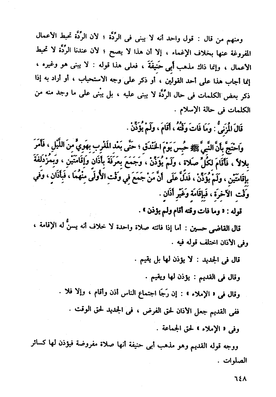 قال المزني: وما فات وقته، أقام ولم يؤذن.