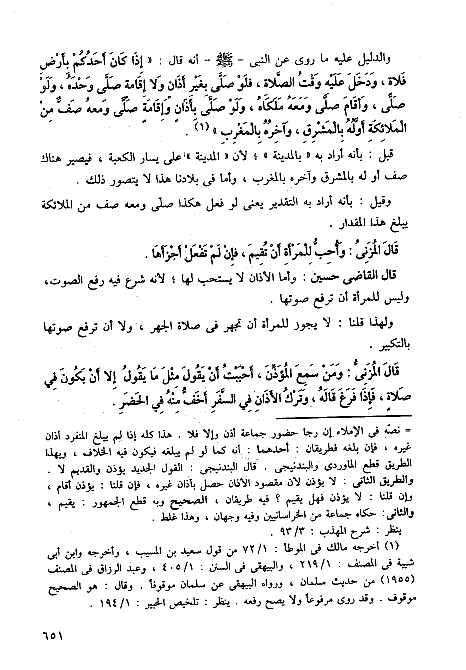 وقيل: بأنه اراد به التقدير يعني لو فعل هكذا صلى ومعه صف من الملائكة يبلغ هذا المقدار، قال المزني: وأحب للمراة أن تقيم، فإن لم تفعل أجزأها.