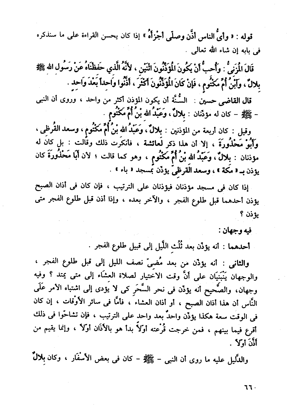 إذا كان في مسجد مؤذنان فيؤذنان على الترتيب فإن كان في أذان الصبح يؤذن أحدهما قبل طلوع الفجرن والآخر بعده وإذا أذن قبل طلوع الفجر متى يؤذن؟