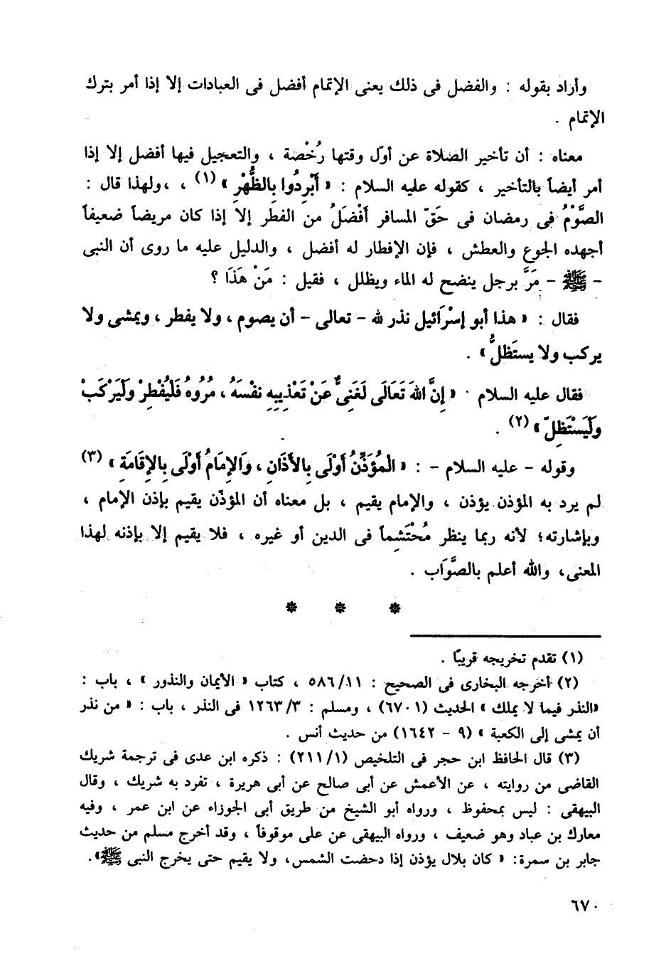فقال: هذا أبو إسرائيل نذر لله تعالى، أن يصوم، ولا يفطر ويمشى ولا يركب ولا يستظل.