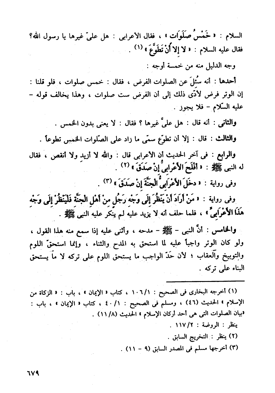 السلام: خمس صلوات، فقال الأعرابي: هل علي غيرها يا رسول الله؟ فقال عليه السلام: لا إلا أن تطوع.