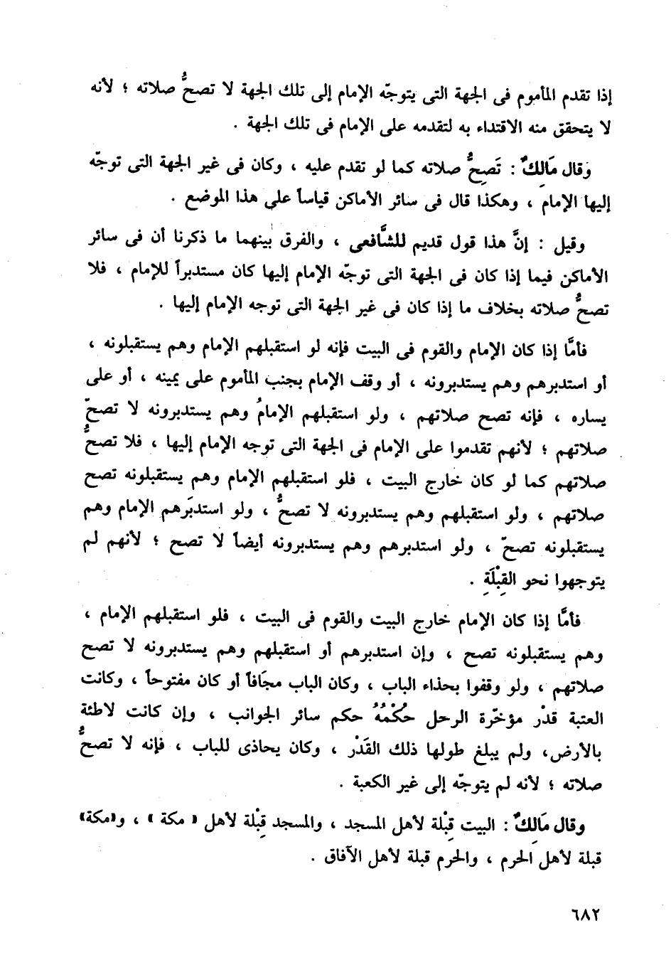 وقال مالك: البيت قبلة لأهل المسجد، والمسجد قبلة لأهل مكة، ومكة قبلة لأهل الحرم، والحرم قبلة لأهل الآفاق.