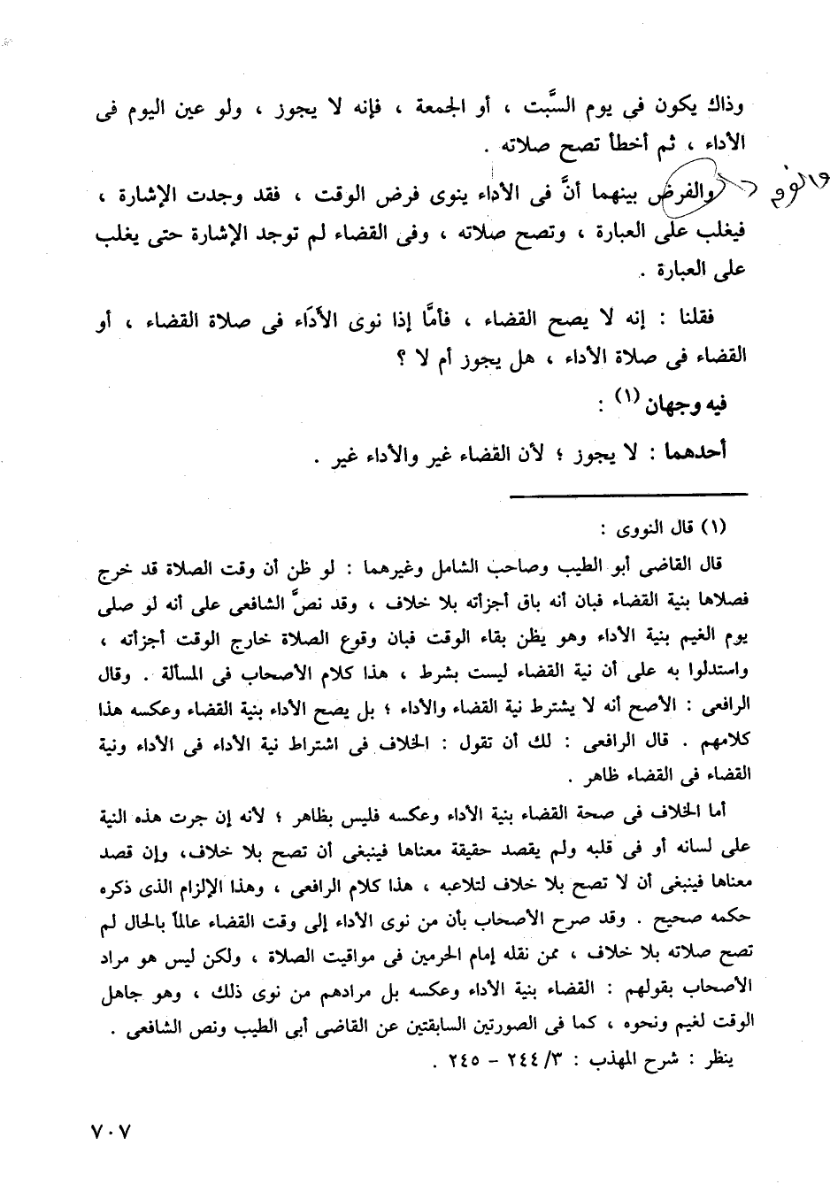 والفرق بينهما أن في الأداء ينوي فرض الوقت، فقد وجدت الإشارة فيغلب على العبارة، وتصح صلاته، وفي القضاء لم توجد الإشارة حتى يغلب على العبارة.