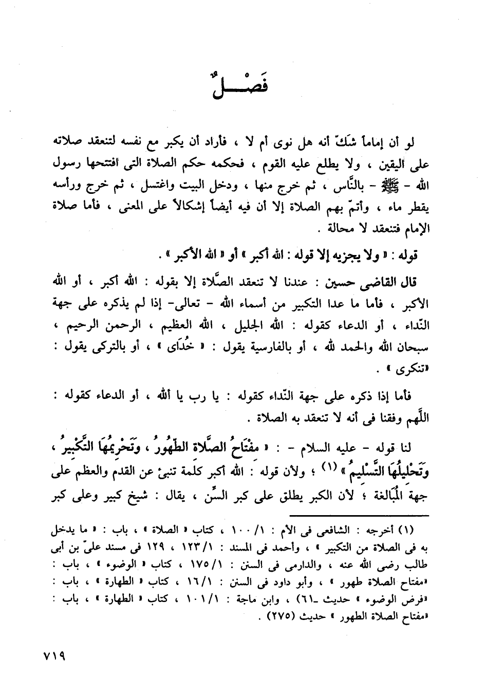 قال القاضي حسين: عندنا لا تنعقد الصلاة إلا بقوله، الله أكبر، أو الله الأكبر فأما ما عدا التكبير من اسماء الله تعالى، إذا لم يذكره على جهة النداء، أو الدعاء كقوله، الله الجليل، الله العظيم، الرحمن الرحيم، سبحان الله والحمد لله، أو بالفارسية، يقول خداي، أو بالتركي يقول تنكرى.