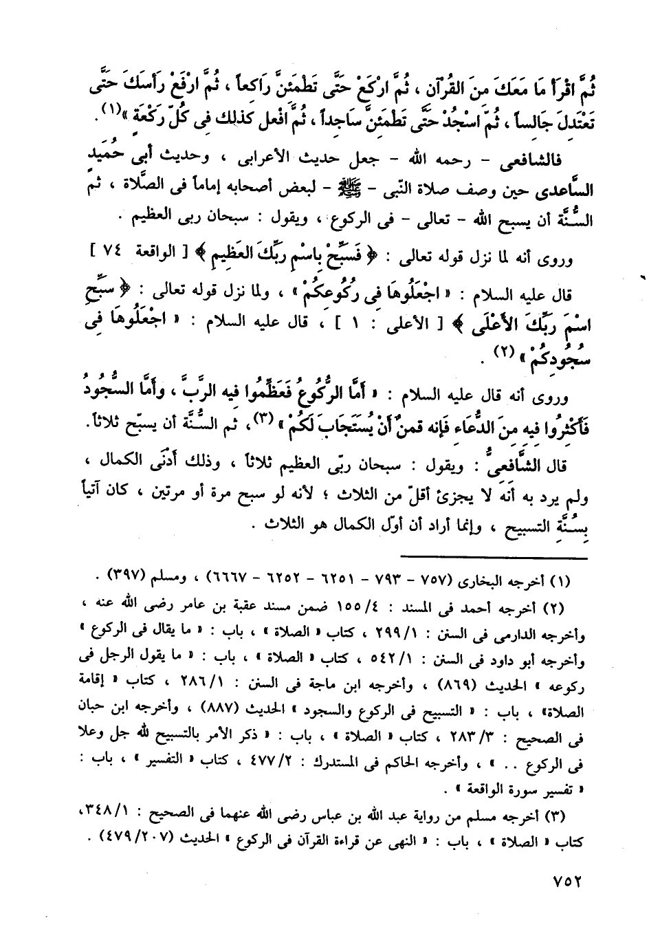 فالشافعي رحمه الله جعل حديث الأعرابي، وحديث أبي حميد الساعدي حين وصف صلاة النبي صلى الله عليه وسلم لبعض أصحابه إمامًا في الصلاة، ثم السنة أن يسبح الله تعالى في الركوع، ويقول: سبحان ربي العظيم.