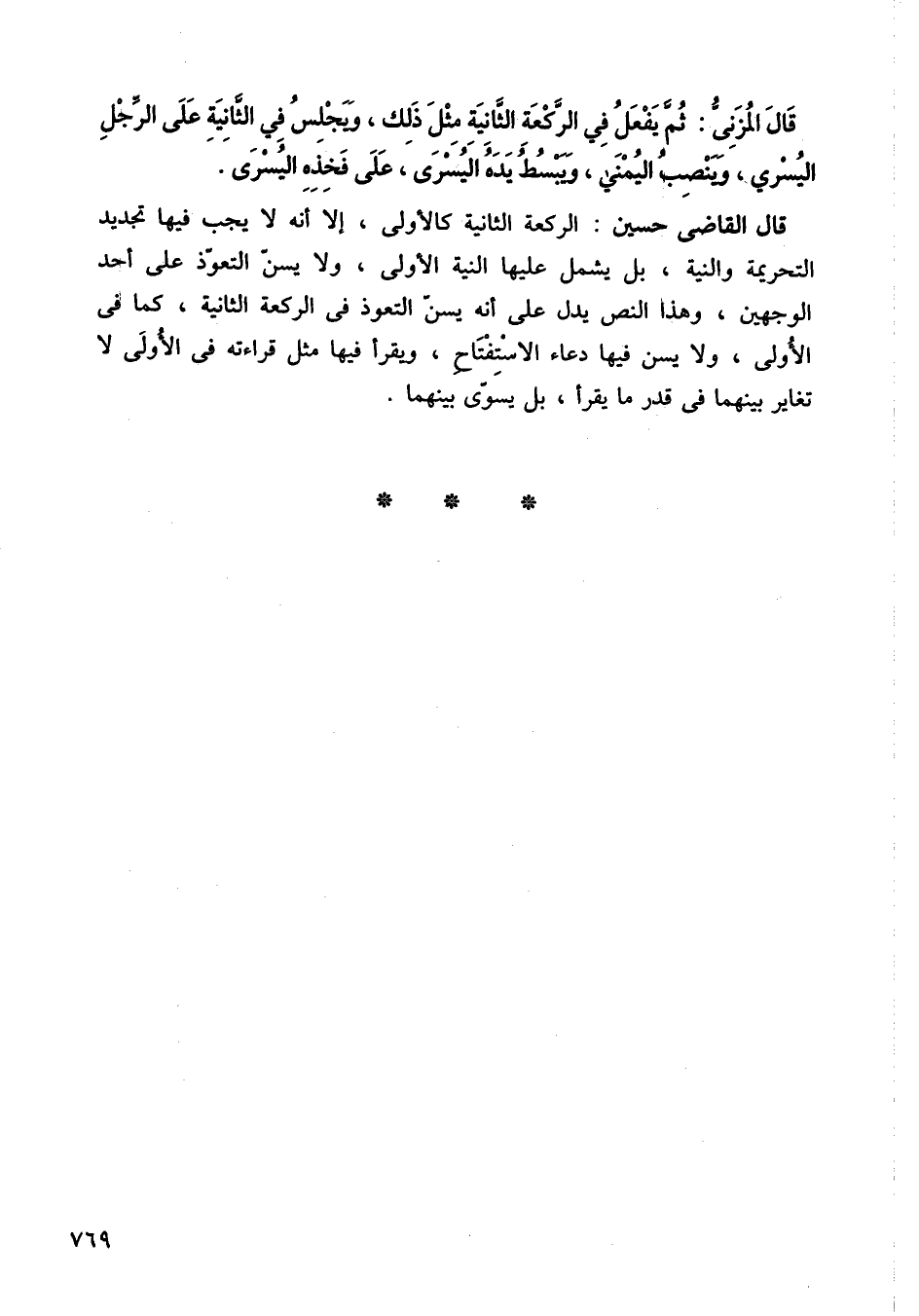 قال المزني: ثم يفعل في الركعة الثانية مثل ذلك، ويجلس في الثانية، على الرجل اليسرى، وينصب اليمني، ويبسط يده اليسرى، على فخذه اليسرى.