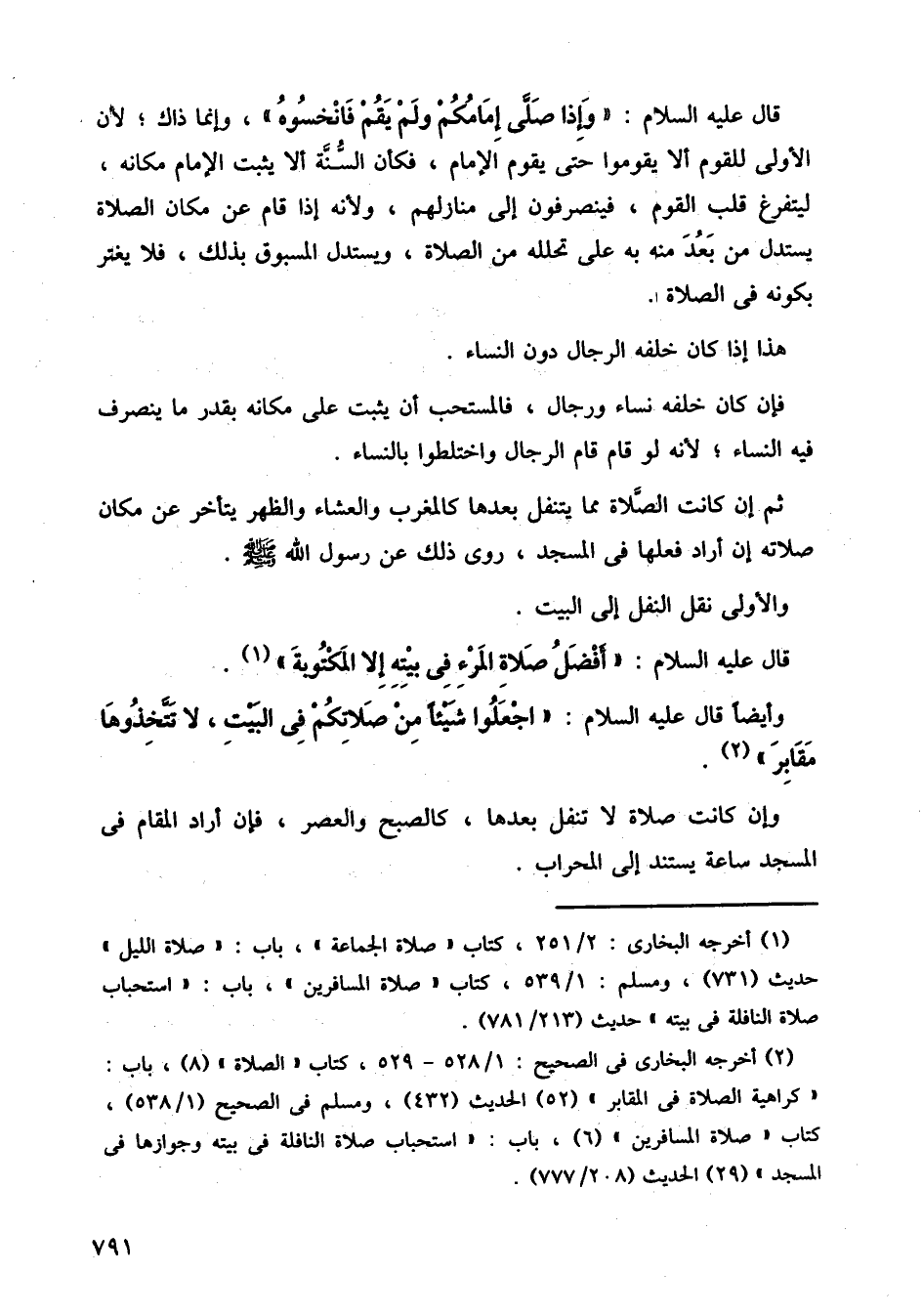 وأيضا قال عليه السلام: اجعلوا شيئا من صلاتكم في البيت، لا تتخذوها مقابر.