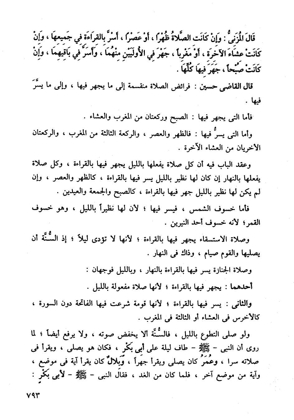 وعقد الباب فيه أن كلا صلاة يفعلها بالليل يجهر فيها بالقراءة، وكل صلاة يفعلها بالنهار إن كان لها نظير بالليل يسر فيها بالقراءة، كالظهر والعصر، وإن لم يكن لها نظير بالليل جهر فيها بالقراءة، كالصبح والجمعة والعيدين.