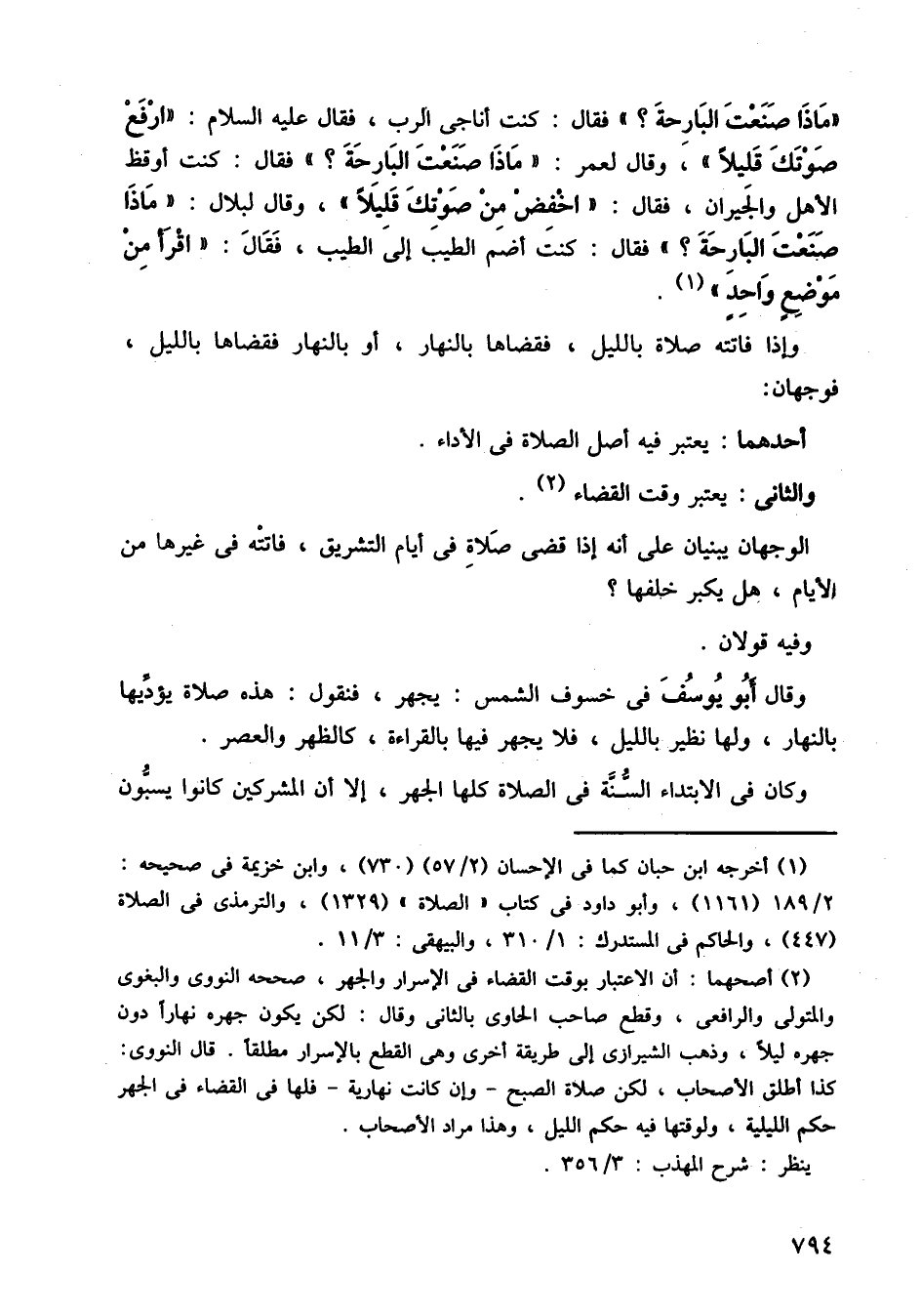 وإن فاتته صلاة بالليل، فقضاها بالنهار، او بالنهار فقضاها بالليل فوجهان: