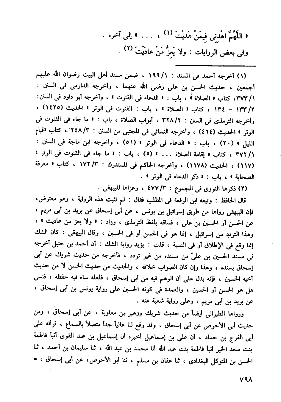 اللهم اهدني فيمن هديت، ... ، إلى آخره.