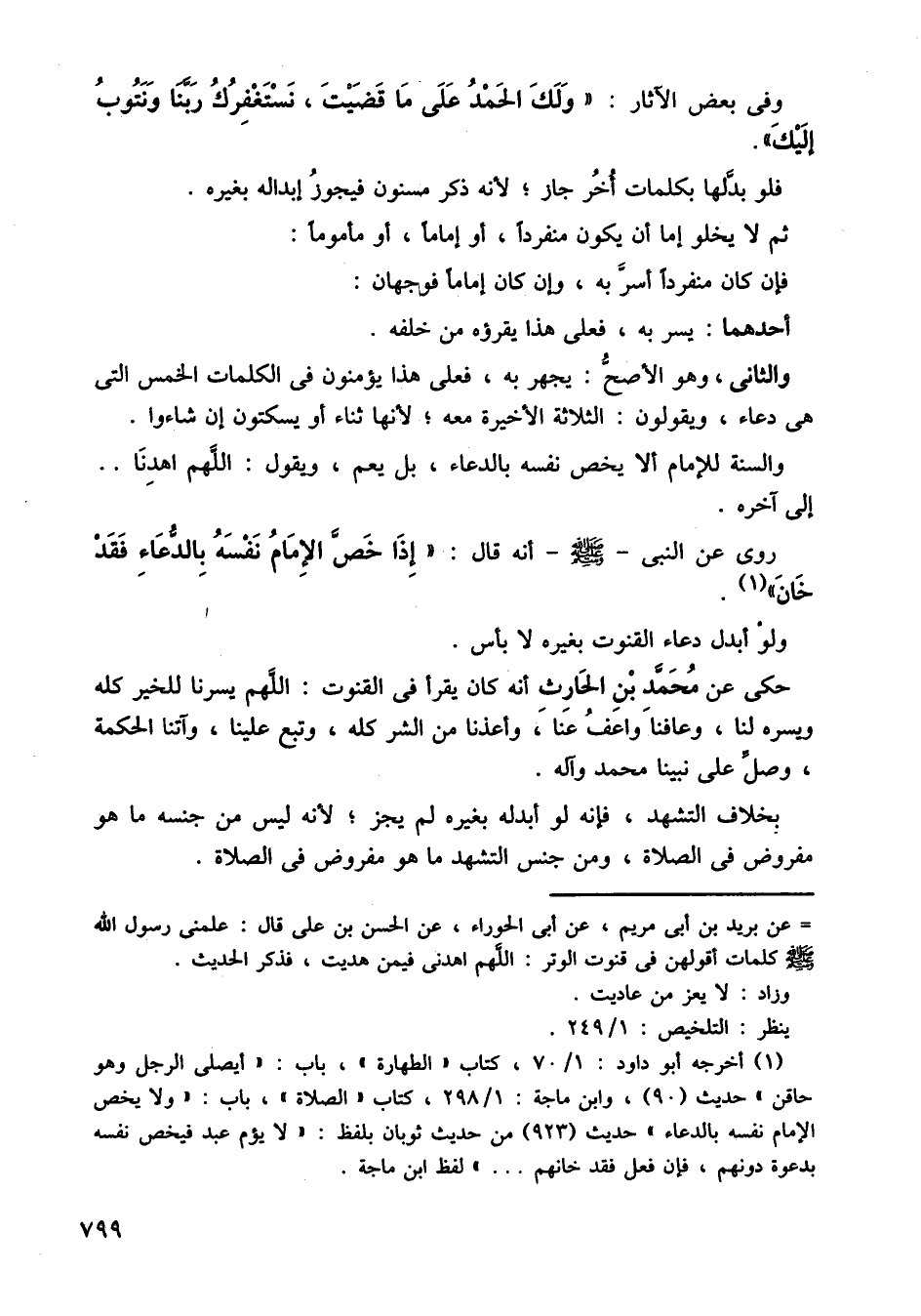 روى عن النبي صلى الله عليه وسلم أنه قال: إذا خص الإمام نفسه بالدعاء فقد خان. ولو أبدل دعاء القنوت بغيره لا بأس.