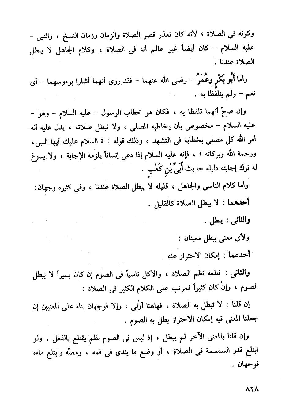 وكونه في الصلاة؛ لأنه كان تعذر قصر الصلاة والزمان وزمان النسخ، والنبي عليه السلام كان أيضا غير عالم أنه في الصلاة، وكلام الجاهل لا يبطل الصلاة عندنا.
