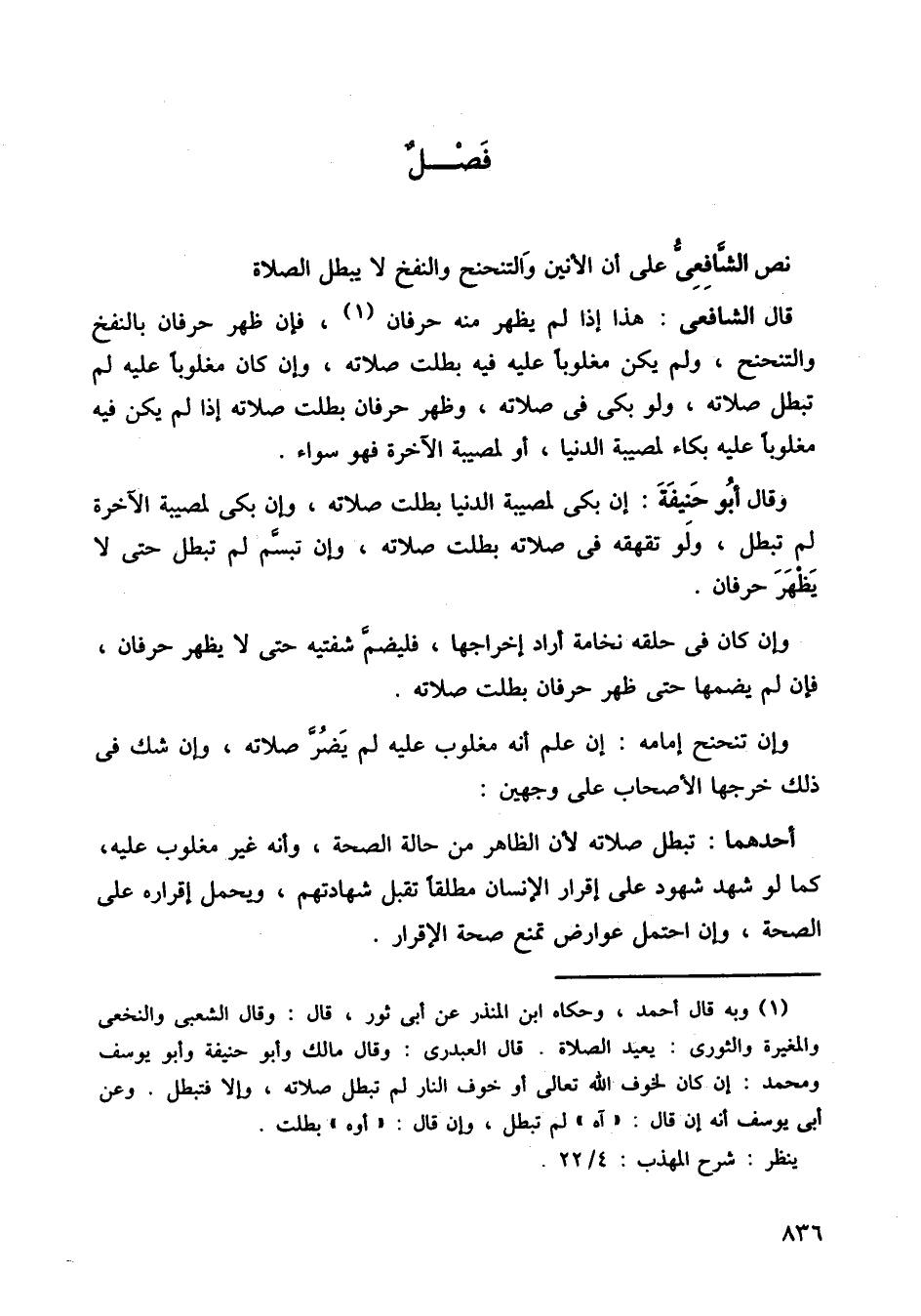 نص الشافعي على ان الأنين والتنحنح وانفح لا يبطل الصلاة.