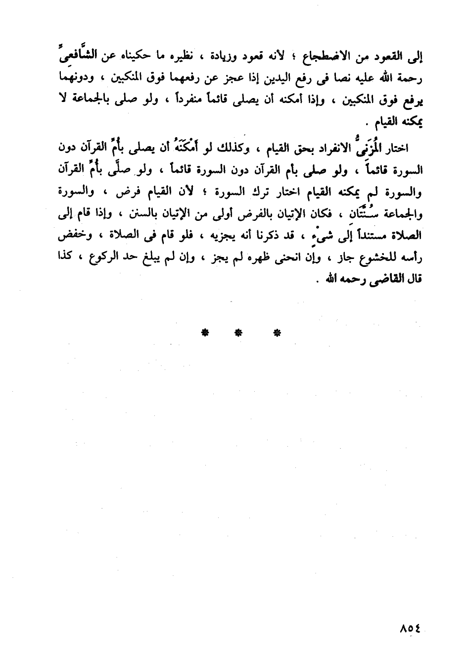اختار المزني الانفراد بحق القيام، وكذلك لو أمكنه أن يصلي بأم القرآن دون السورة قائمًا، ولو صلى بأم القرآن دون السورة قائمًا، ولو صلى بأم القرآن والسورة لم يمكنه القيام اختار ترك السورة؛ لأن القيام فرض، والسورة والجماعة سنتان، فكان الإتيان بالفرض أولى من الإتيان بالسنن، وإذا قام إلى الصلاة مستندًا إلى شيء، قد ذكرا أنه يجزيه، فلو قام في الصلاة، وخفض رأسه للخشوع جاز، وإن انحنى ظهره لم يجز، وإن لم يبلغ حد الركوع، كذا قال القاضي رحمه الله.