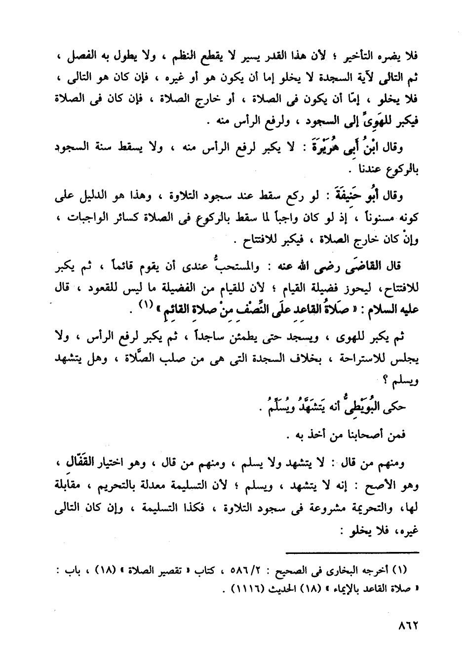 ثم يكبر للهوي، ويسجد حتى يطمئن ساجدًا، ثم يكبر لرفع الرأس، ولا يجلس للاستراحة، بخلاف السجدة التي هي من صلب الصلاة، وهل يتشهد ويسلم؟