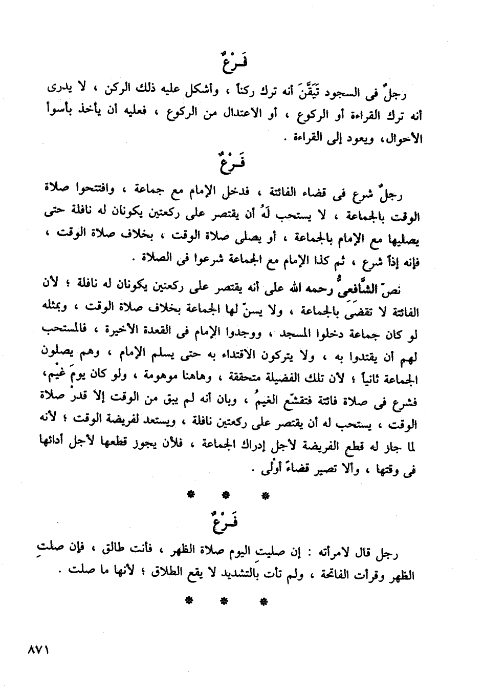 نص الشافعي رحمه الله على أنه يقتصر على ركعتين يكونان له نافلة؛ لأن الفائتة لاتقتضي بالجماعة، ولا يسن لها الجماعة بخلاف صلاة الوقت، وبمثله لو كان جماعة دخلوا المسجد، ووجدوا الإمام في القعدة الأخيرة، فالمستحب لهم أن يقتدوا به، ولا يتركون الاقتداء به حتى يسلم الإمام، وهم يصلون الجماعة ثانيًأ، لأن تلك الفضيلة متحققة، وها هنا موهومة، ولو كان يوم غيم فشرع في صلاة فائتة فتقشع الغيم، وبان أنه لم يبق من الوقت إلا قدر صلاة الوقت، يستحب له أن يقتصر على ركعتين نافلة، ويستعد لفريضة الوقت، لأنه لما جاز له قطع الفريضة لأجل إدراك الجماعة، فلأن يجوز قطعها لأجل أدائها في وقتها وألا تصير قضاء أولى.