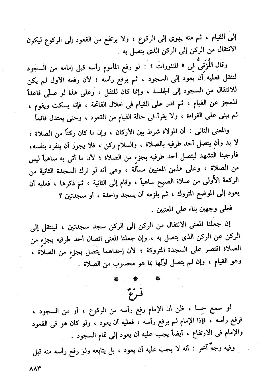 والمعنى الثاني: أن المولاة شرط بين الأركان، وإن ما كان ركنًا من الصلاة، لابد وأن يتصل أحد طرفيه بالصلاة، والسلام ركن، فلا يجوز أن ينفرد بنفسه، فأوجبنا التشهد ليتصل أحد طرفيه بجزء من الصلاة؛ لأن ما أتى به ساهيًا ليس من الصلاة، وعلى هذين المعنيين مسألة، وهي أنه لو ترك السجدة الثانية من الركعة الأولى من صلاة الصبح ساهيًا، وقام إلى الثانية، ثم ذكرها، فعليه أن يعود إلى الموضع المتروك، ثم يلزمه أن يسجد واحدة، أو سجدتين؟