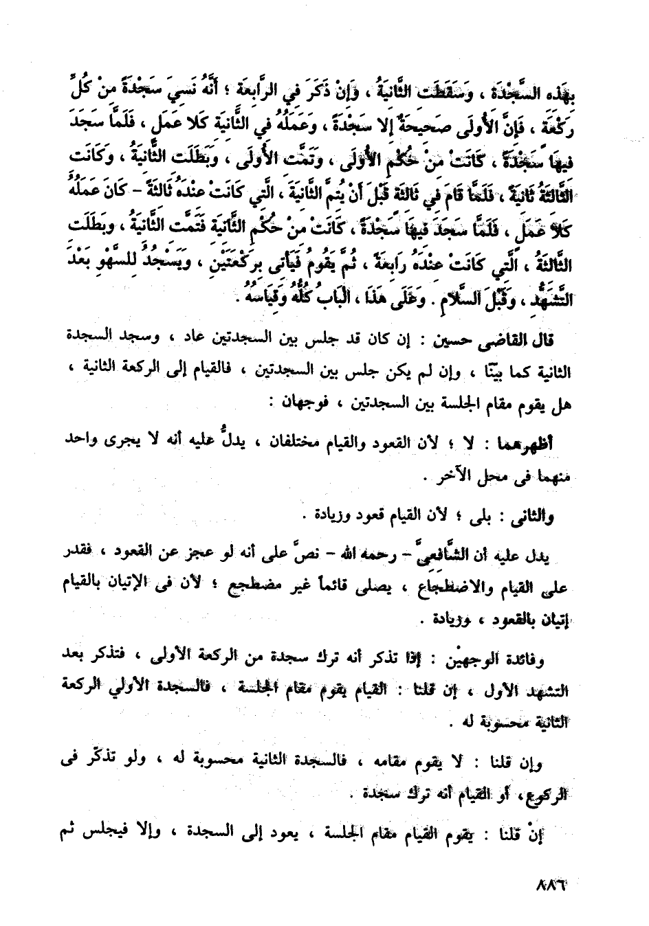 قال القاضي حسين: إن كان قد جلس بين السجدتين عاد، وسجد السجدة الثانية كما بينا، وإن لم يكن جلس بين السجدتين، فالقيام إلى الركعة الثانية، هل يقوم مقام الجلسة بين السجدتين، فوجهان: أظهرهما: لا؛ لأن القعود والقيام مختلفان يدل عليه انه لا يجري واحد منهما في محل الآخر، والثاني: بلى؛ لأن القيام قعود وزيادة.