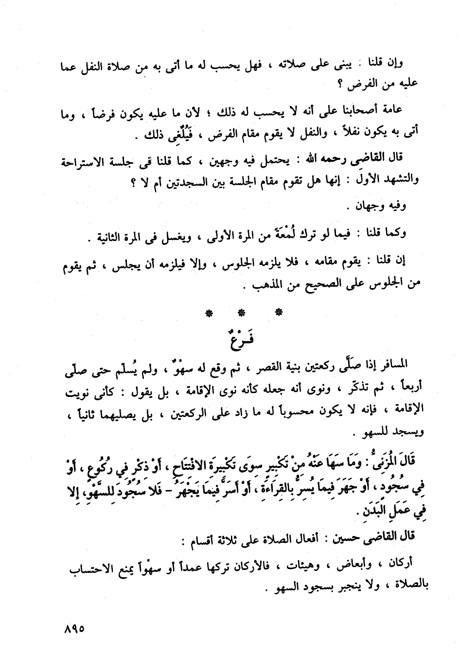 قال القاضي حسين: أفعال الصلاة على ثلاثة أقسام: