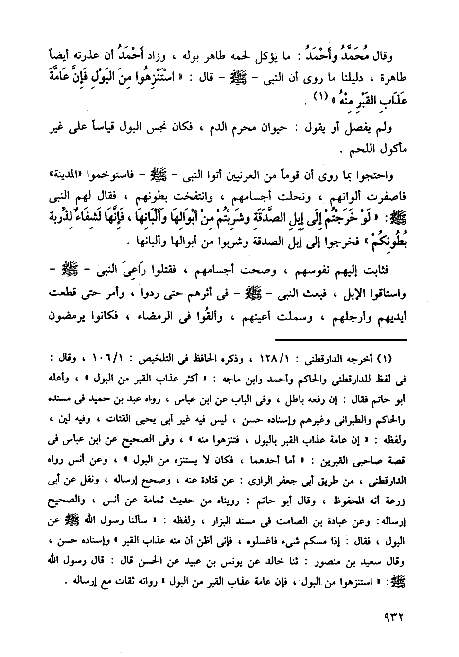 واحتجوا بما روى أن قومًا من العرنيين أتوا النبي صلى الله عليه وسلم، فاستوخموا المدينة فاصفرت ألوانهم، ونحلت أجسامهم، وانتفخت بطونهم، فقال لهم النبي صلى الله عليه وسلم، لو خرجتم إلى إبل الصدقة وشربتم، من أبوالها وألبانها، فإنها لشفاء لذربة بطونكم، فخرجوا إلى إبل الصدقة وشربوا من أبوالها وألبانها.