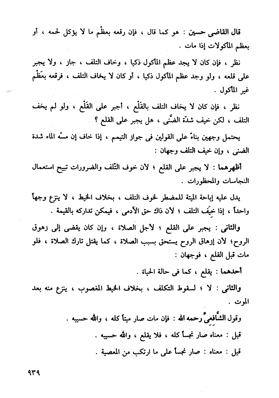 وقول الشافعي رحمه الله: فإن مات صار ميتًا كله، والله حسيبه.