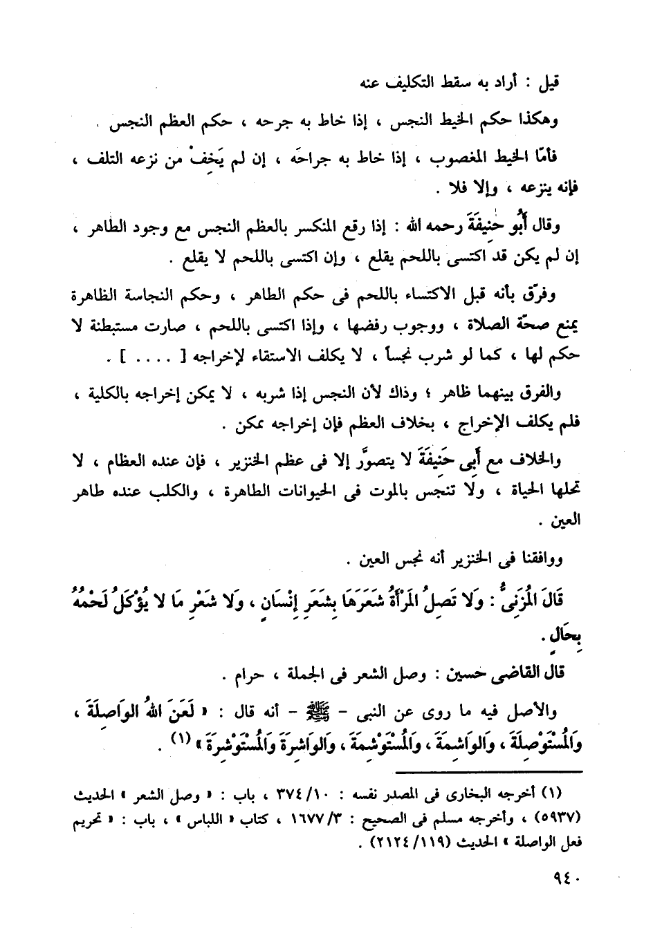 قال المزني: ولا تصل المرأة المرأة شعرها بشعر إنسان، ولا شعر ما لا يؤكل لحمه بحال.
