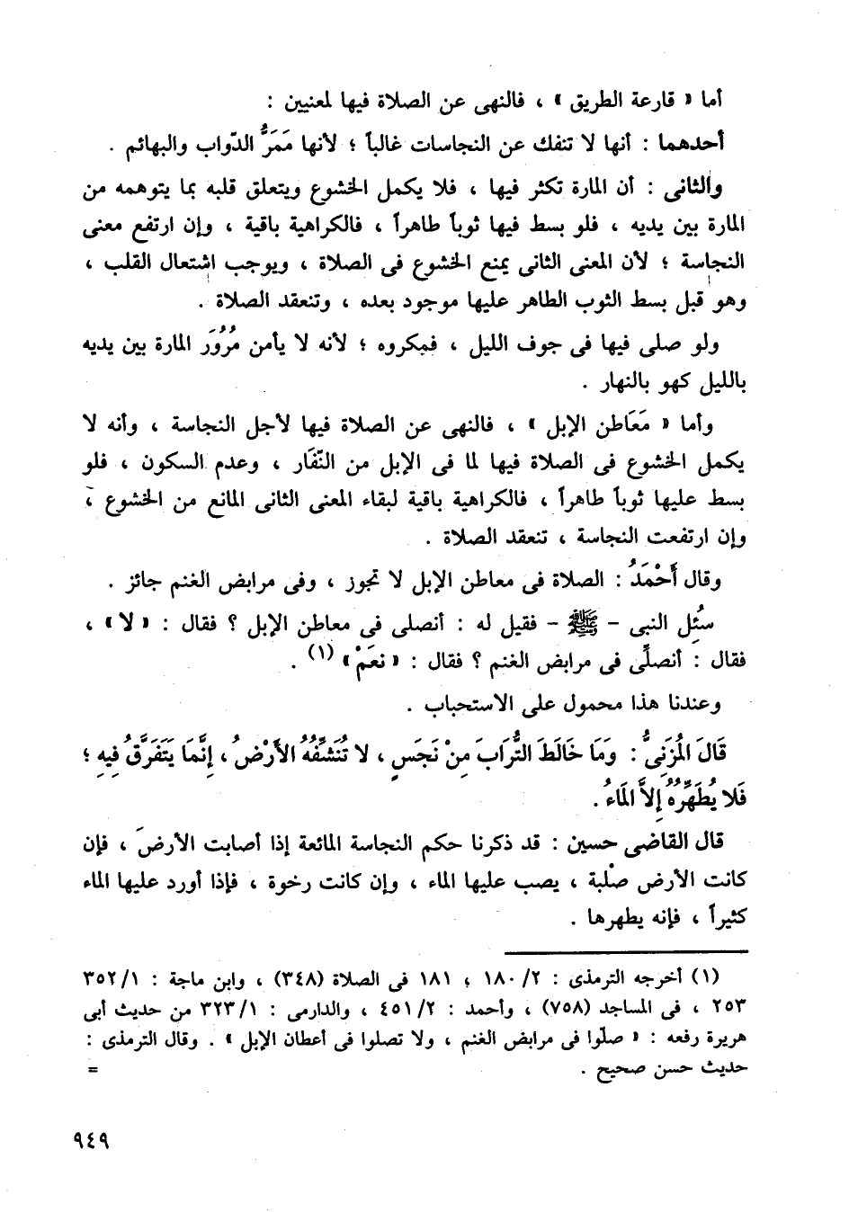 وقال أحمد: الصلاة في معاطن الإبل لا تجوز، وفي مرابض الغنم جائز، سئل النبي صلى الله عليه وسلم، فقيل له: أنصلي في معاطن الإبل؟ فقال: لا، فقال: أنصلي في مرابض الغنم، فقال: نعم.