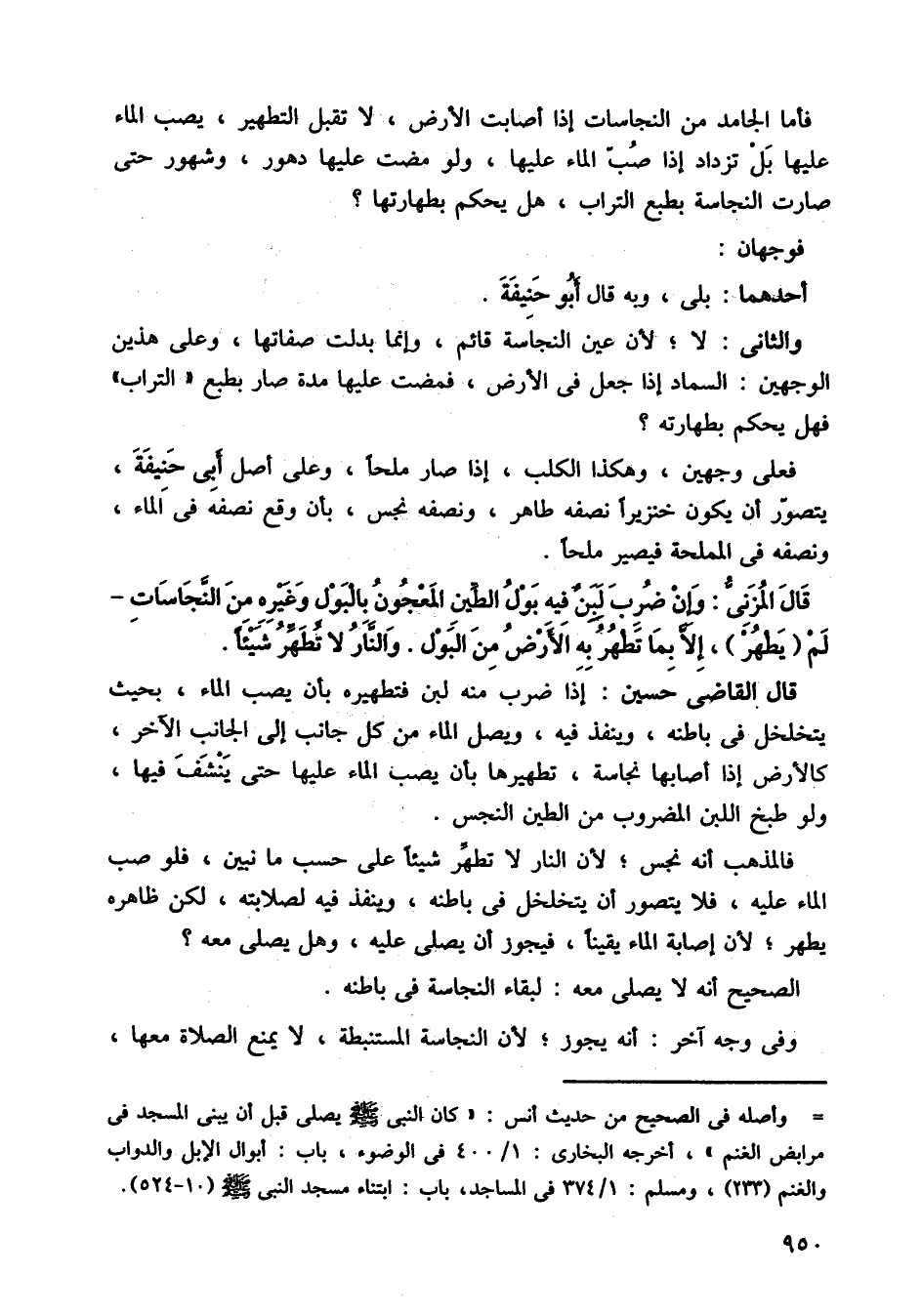 فأما الجامد من النجاسات إذا أصابت الأرض، لا تقبل التطهير، يصب الماء عليها بل تزداد إذا صب الماء عليها، ولو مضت عليها دهور، وشهور حتى صارت النجاسة بطبع التراب هل يحكم بطهارتها؟