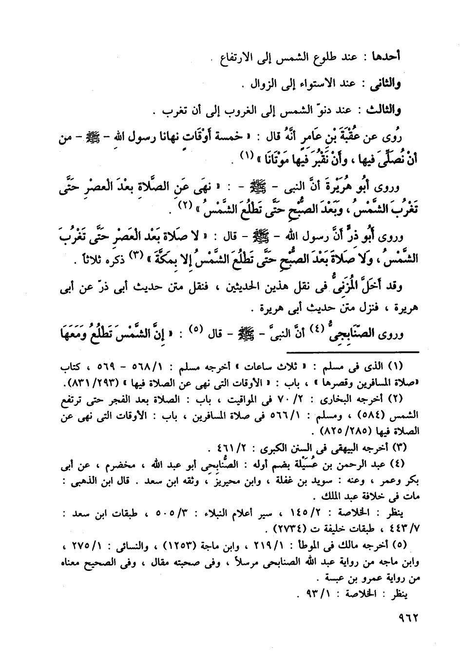 وروى أبو هريرة أن النبي صلى الله عليه وسلم نهي عن الصلاة بعد العصر حتى تغرب الشمس، وتصبح حتى تطلع الشمس.