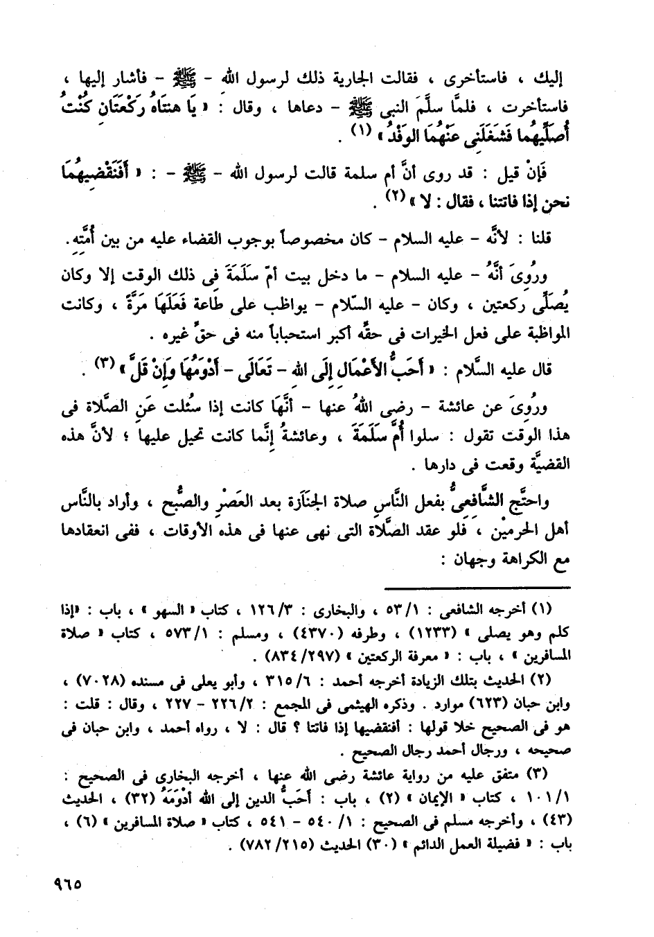 وروى عن عائشة رضي الله عنها أنها كانت إذا سئلت عن الصلاة في هذا الوقت تقول: سلوا أم سلمة، وعائشة إنما كانت تحيل عليها، لأن هذه القضية وقعت في دارها.