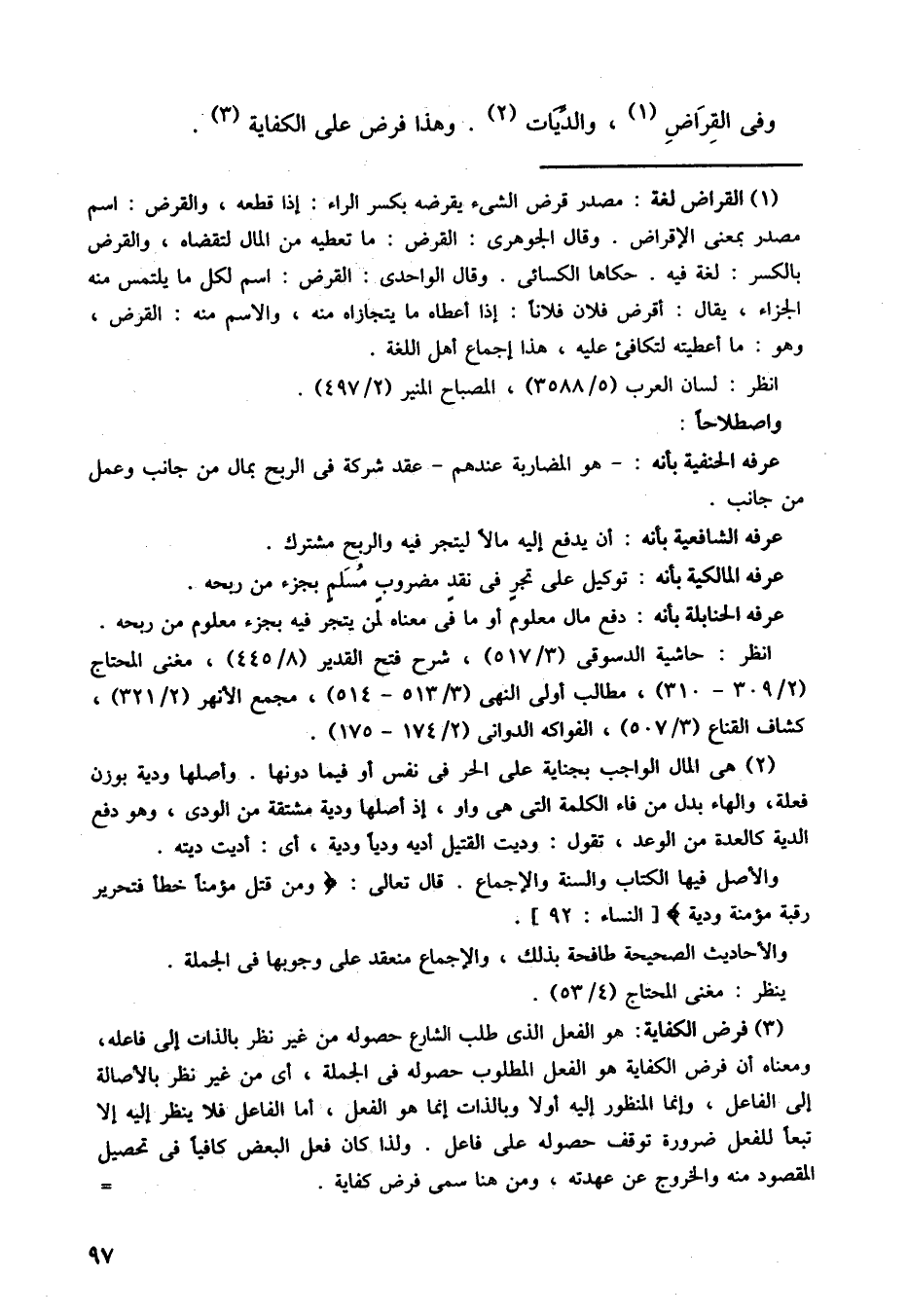 وفي القراض، والديات، وهذا فرض على الكفاية.