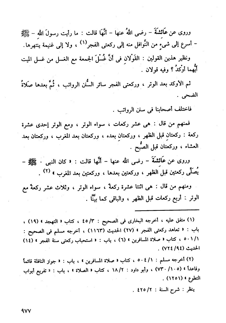 وروي عن عائشة رضى الله عنها، أنها قالت، ما رأيت رسول الله صلى الله عليه وسلم أسرع إلى شيء من النوافل منه إلى ركعتي الفجر، ولا إلى غنيمة ينتهرها، ونظير هذين القولين، القولان في أن غسل الجمعة مع الغسل من غسل الميت أيهما أوكد؟ وفيه قولان.