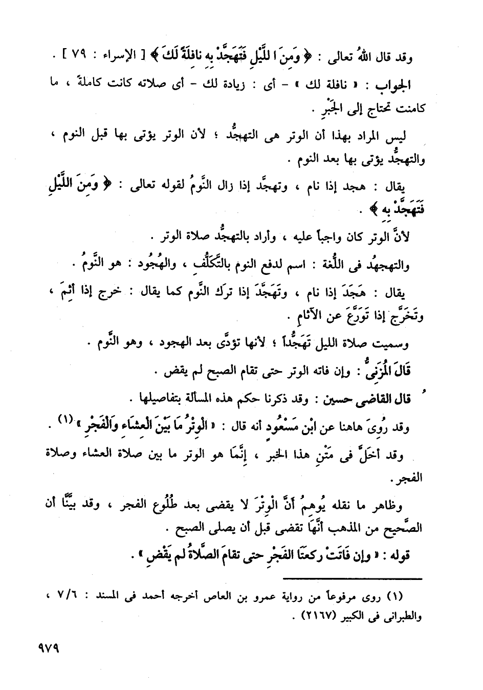 وقد أخل في متن هذا الخبر، إنما هو الوتر ما بين صلاة العشاء وصلاة الفجر.