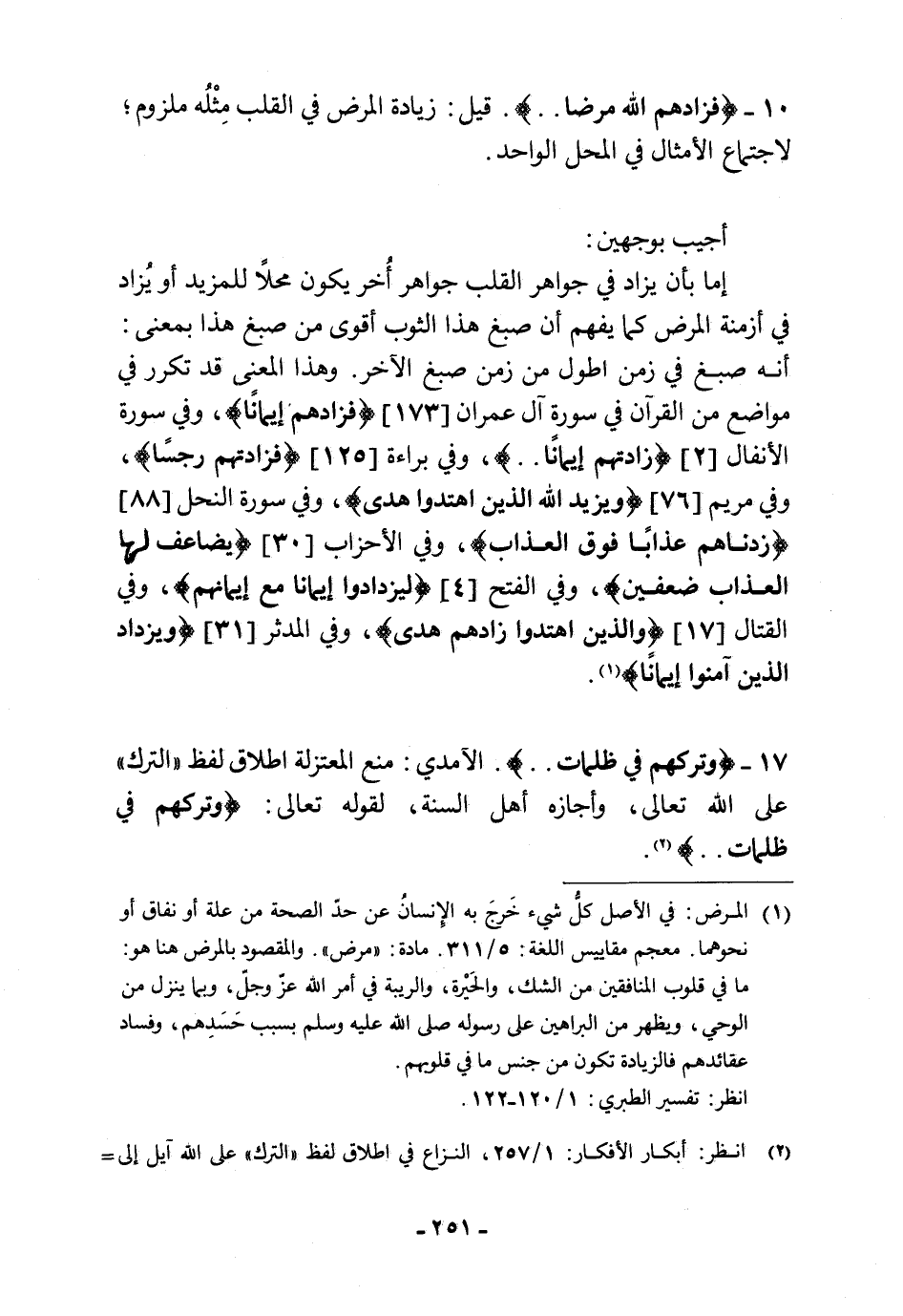 17 - (وَتَرَكَهُمْ فِي ظُلُمَاتٍ. .). الآمدي: منع المعتزلة إطلاق لفظ " الترك " على الله تعالى، وأجازه أهل السنة، لقوله تعالى: (وَتَرَكَهُمْ فِي ظُلُمَاتٍ). . .