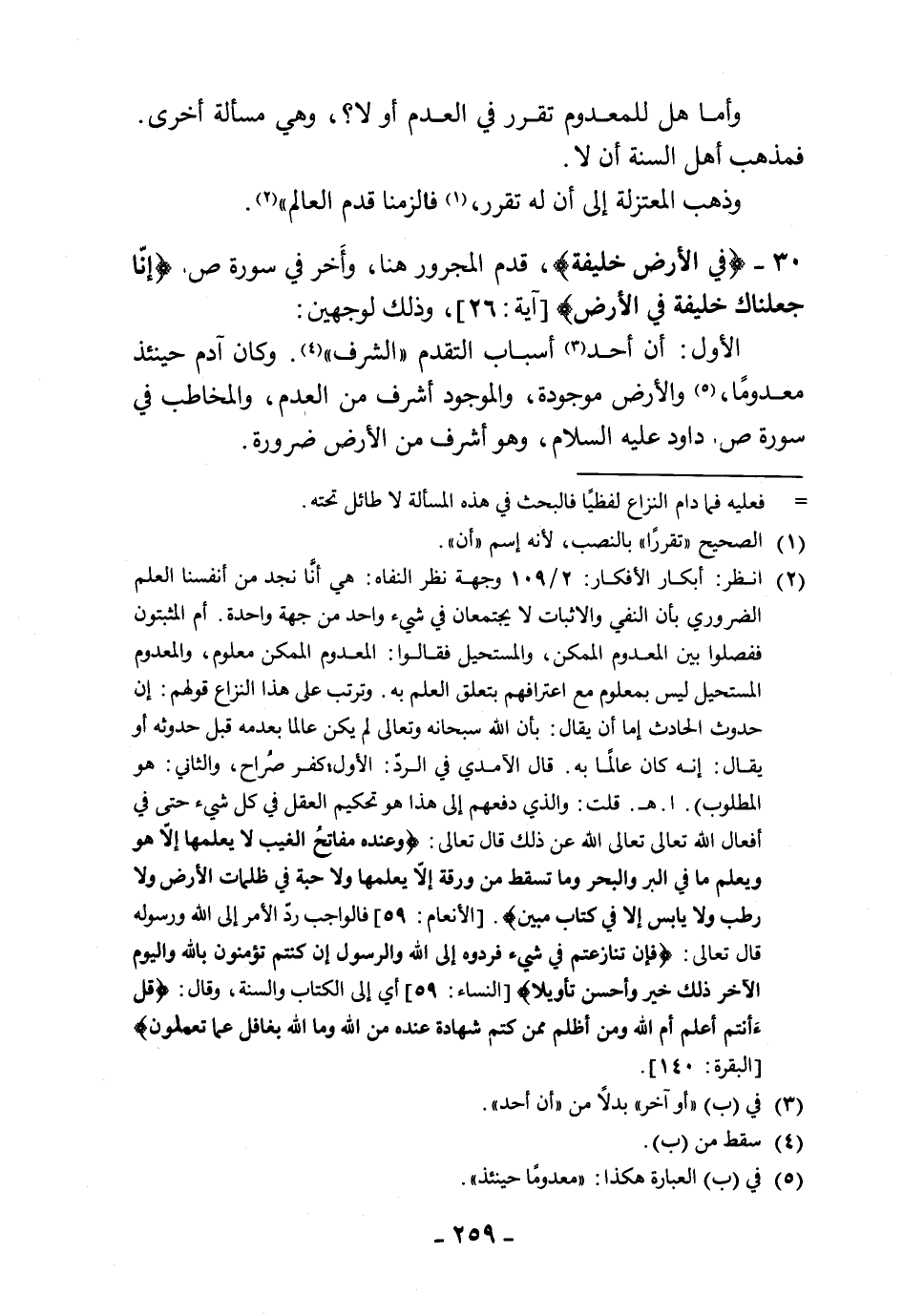 وذهب المعتزلة إلى أن له تقرر، فألزمنا قدم العالم ".