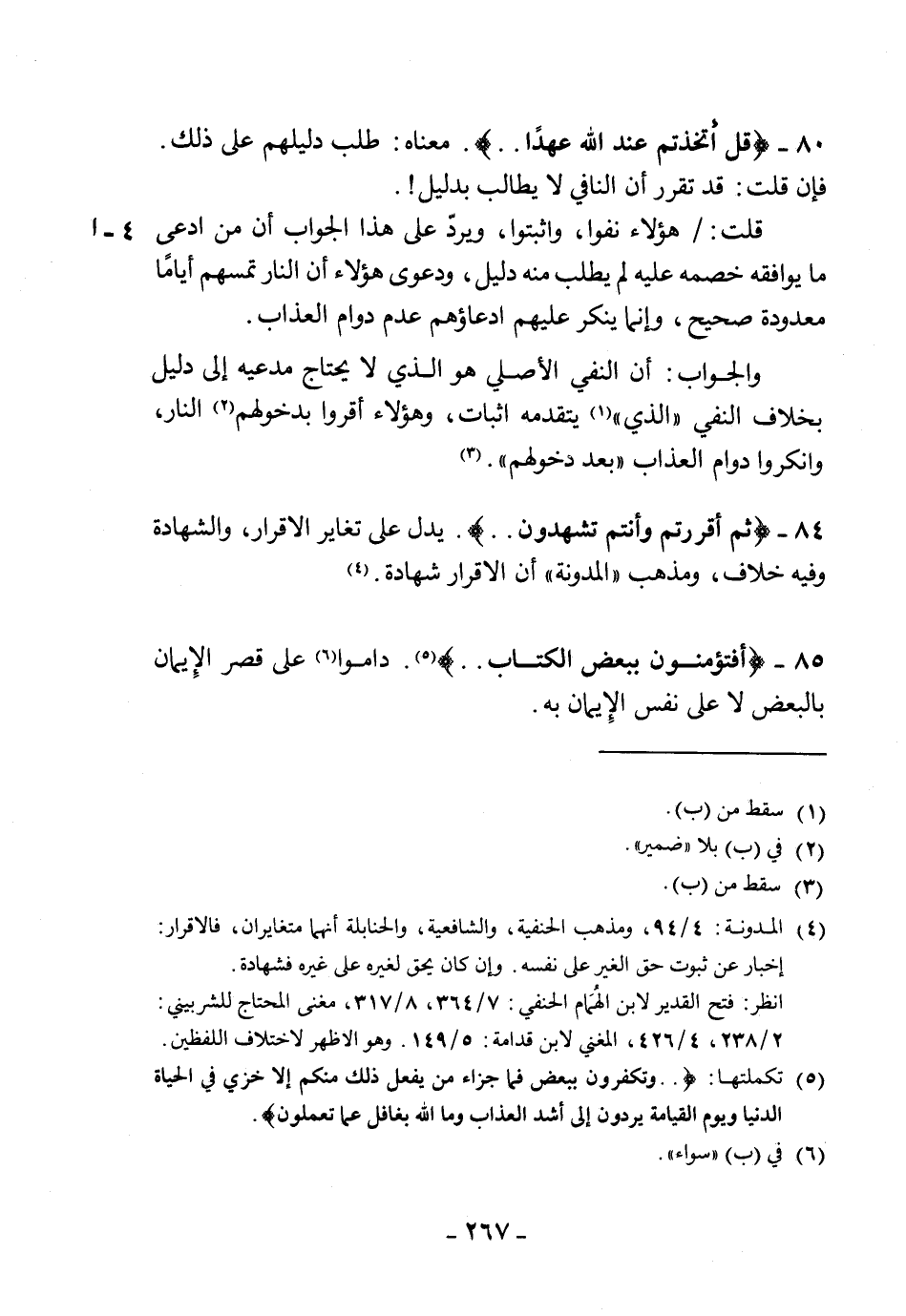 85 - (أفتؤمنون ببعض الكتاب. .). . داموا على قصر الإِيمان بالبعض لا على نفس الإِيمان به.