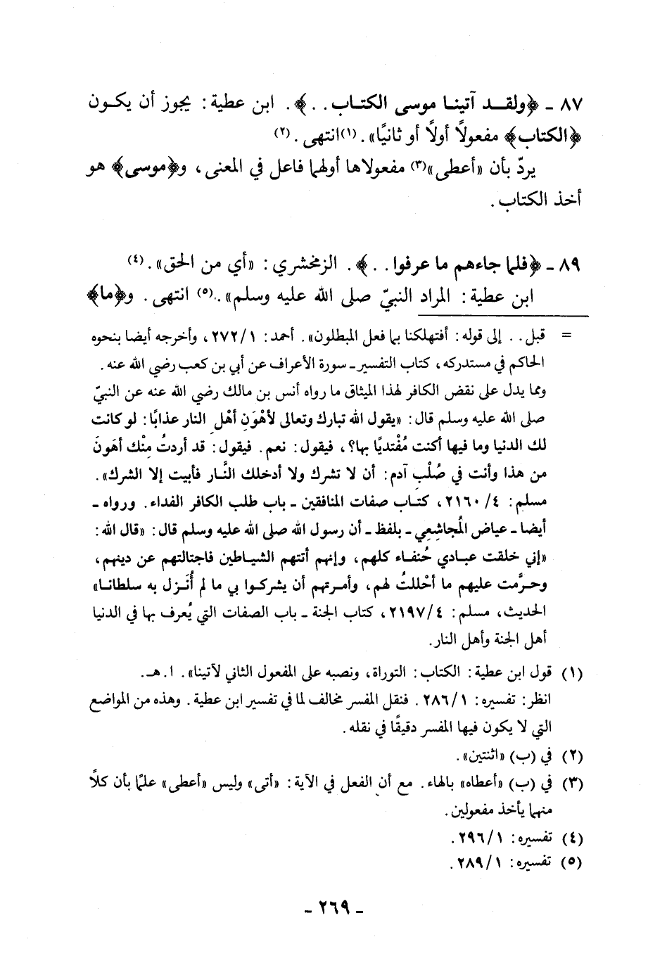 87 - (ولقد آتينا موسى الكتاب. .). ابن عطية: يجوز أن يكون (الكتاب) مفعولًا أولًا أو ثانيًا ". انتهى.