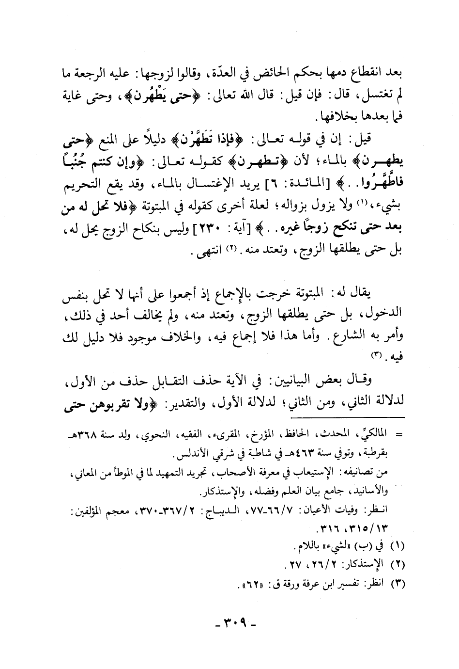 قيل: إن في قوله تعالى: (فإذا تَطَهَّرْن) دليلاً على المنع (حتى يطهرن) بالماء؛ لأن (تطهرن) كقوله تعالى: (وَإِنْ كُنْتُمْ جُنُبًا فَاطَّهَّرُوا. .)، يريد الاغتسال بالماء، وقد يقع التحريم بشيء، ولا يزول بزواله؛ لعلة أخرى كقوله في المبتوتة (فلا تحل له من بعد حتى تنكح زوجًا غيره. .)، وليس بنكاح الزوج يحل له، بل حتى يطلقها الزوج، وتعتد منه. انتهى.