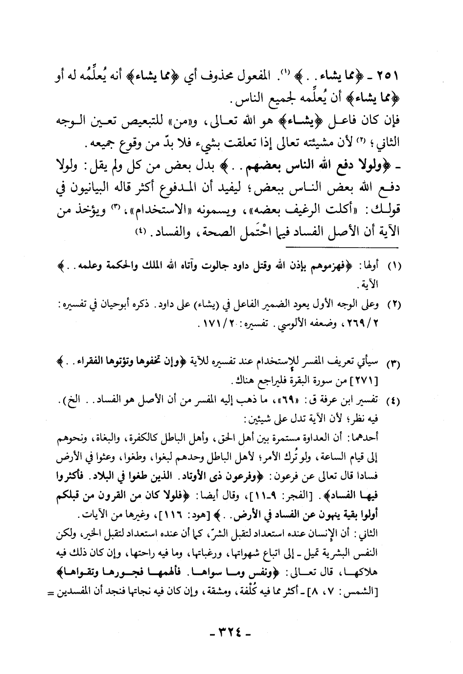 251 - (ومما يشاء. .) المفعول محذوف أي (مما يشاء) أنه يُعلِّمُه له أو (مما يشاء) أن يُعلِّمه لجميع الناس.