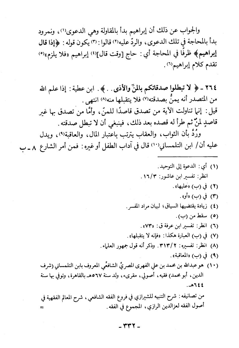 264 - (لا تبطلوا صدقاتكم بالمنِّ والأذى. .). ابن عطية: إذا علم الله من المتصدر أنه يمنُّ بصدقته فلا يتقبلها منه انتهى.
