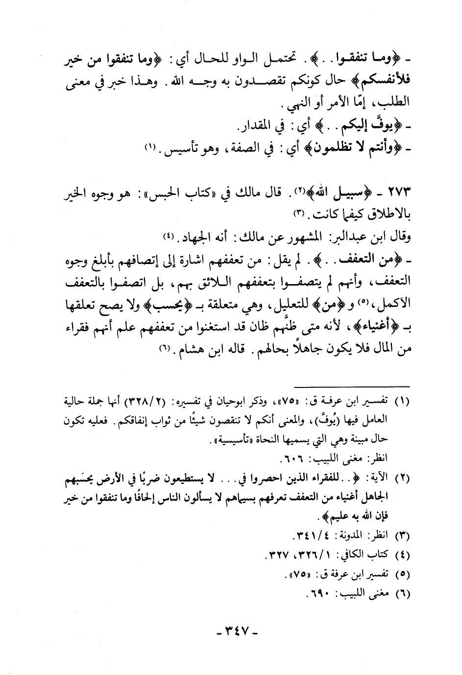 273 - (سبيل الله). قال مالك في " كتاب الحبس ": هو وجوه الخير بالإطلاق كيفما كانت.