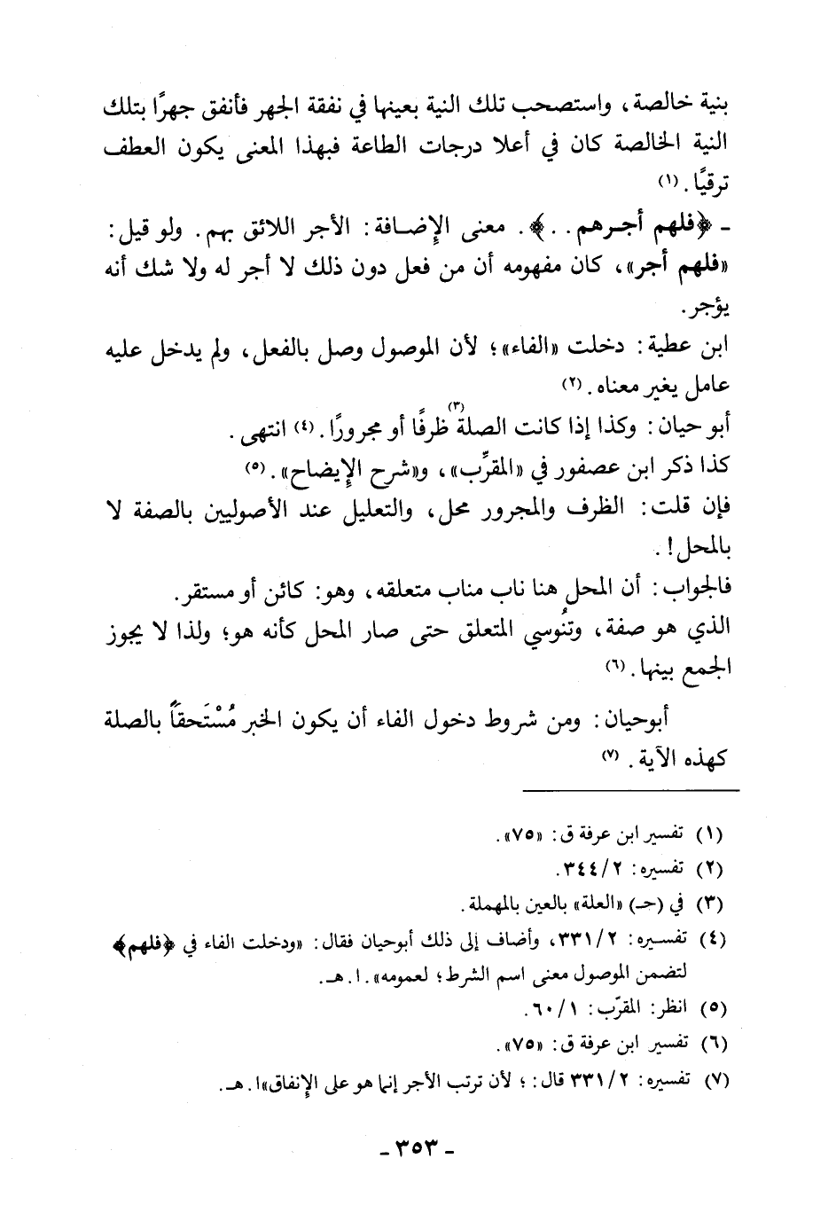 - (فلهم أجرهم. .). معنى الإِضافة: الأجر اللائق بهم. ولو قيل: " فلهم أجر "، كان مفهومه أن من فعل دون ذلك لا أجر له ولا شك أنه يؤجر.