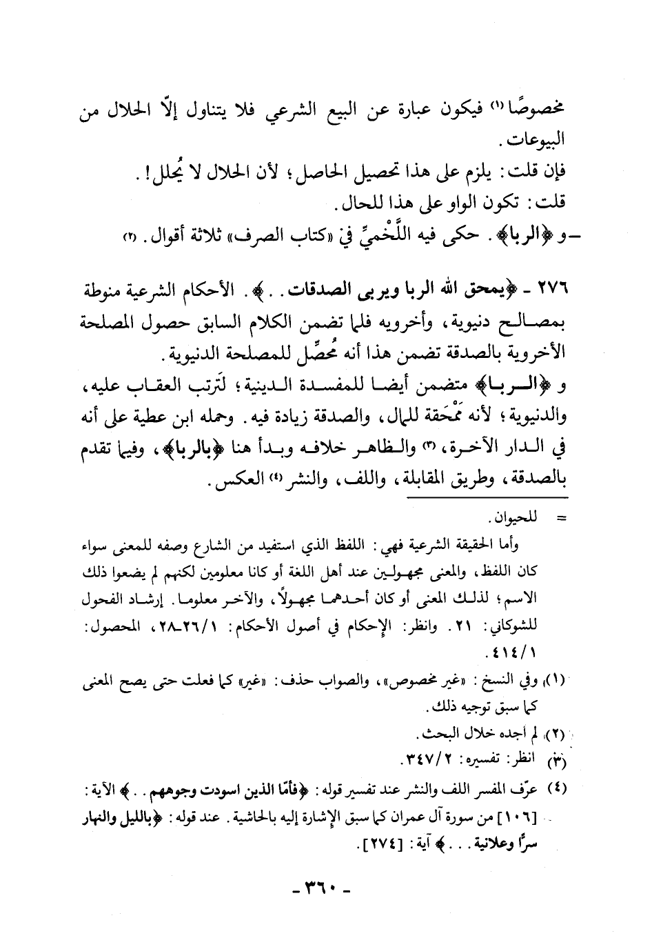 276 - (يَمْحَقُ اللَّهُ الرِّبَا وَيُرْبِي الصَّدَقَاتِ. .). الأحكام الشرعية منوطة بمصالح دنيوية، وأخروية فلما تضمن الكلام السابق حصول المصلحة الأخروية بالصدقة تضمن هذا أنه مُحصِّل للمصلحة الدنيوية.
