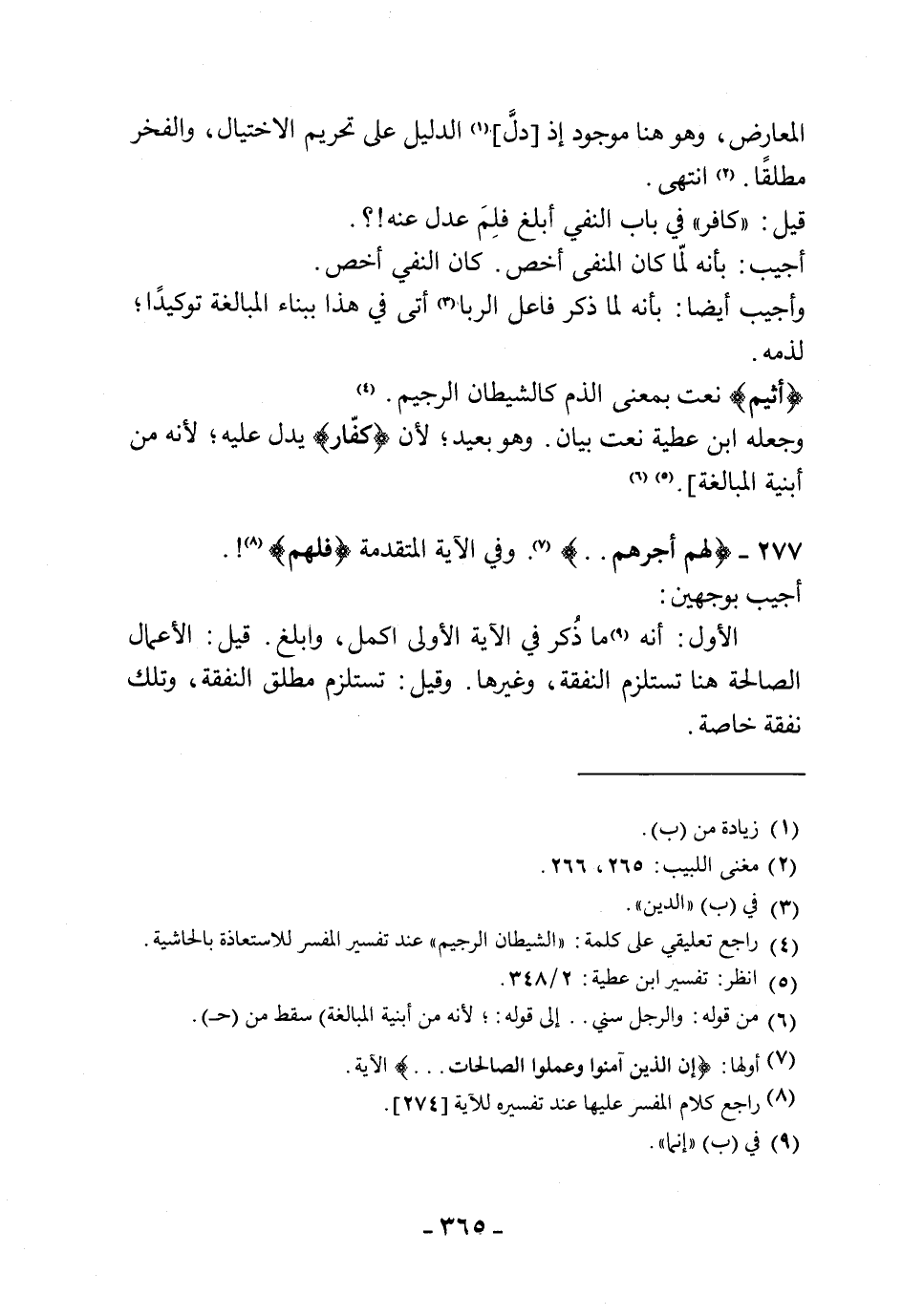 وأجيب أيضا: بأنه لما ذكر فاعل (الربا) أتى في هذا ببناء المبالغة توكيدًا لذمه.